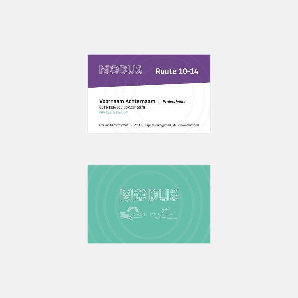 Opdracht: vormgeven van een visitekaartje voor MODUS (onderwijsroute voor leerlingen van 10-14 jaar in Burgum).