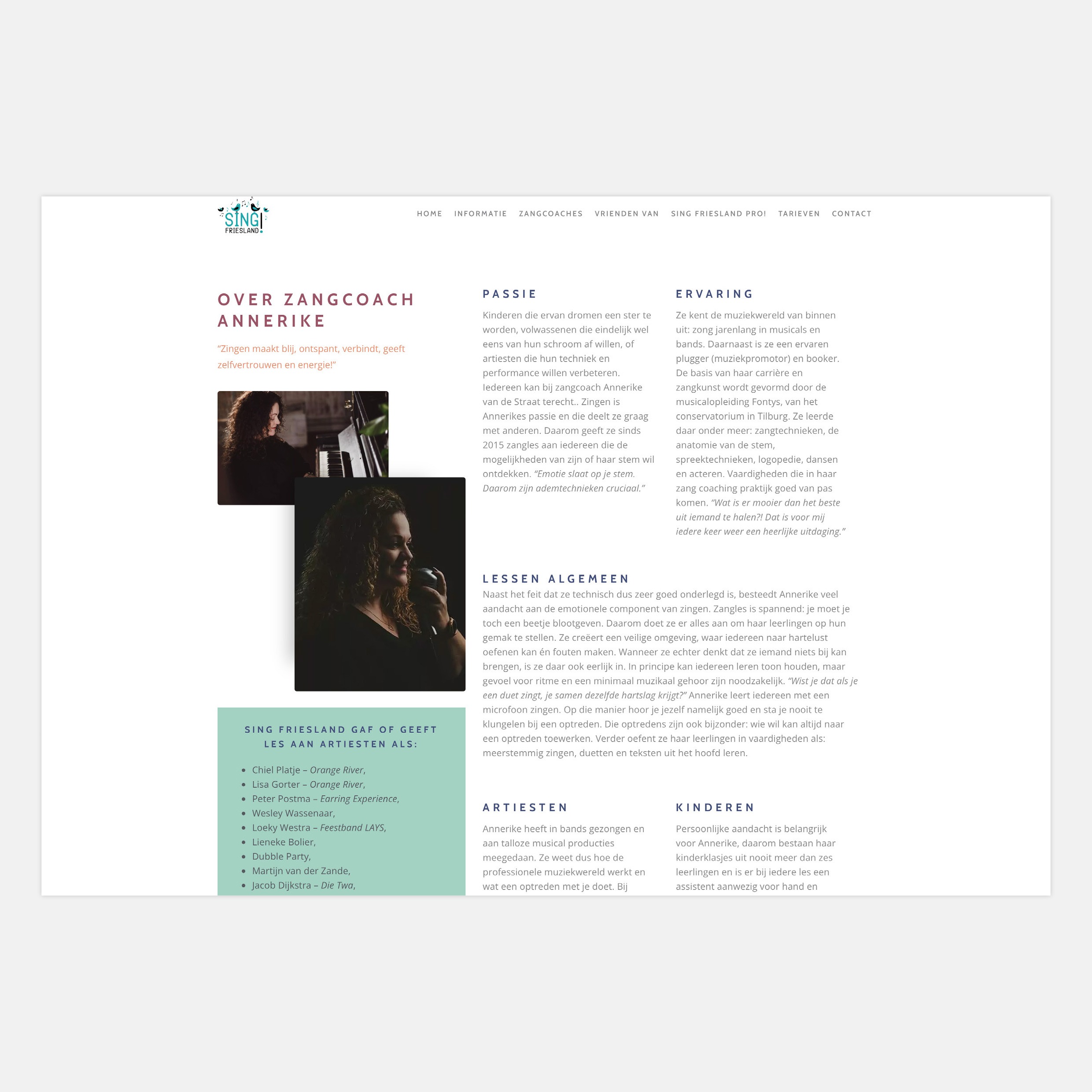 Plugger: Naast zangcoach is Annerike ook een succesvol muziekplugger. Voor deze tak van haar sport verzorg ik ook alle vormgeving en communicatiemiddelen, zoals: website, biografieën, persberichten etcetera.